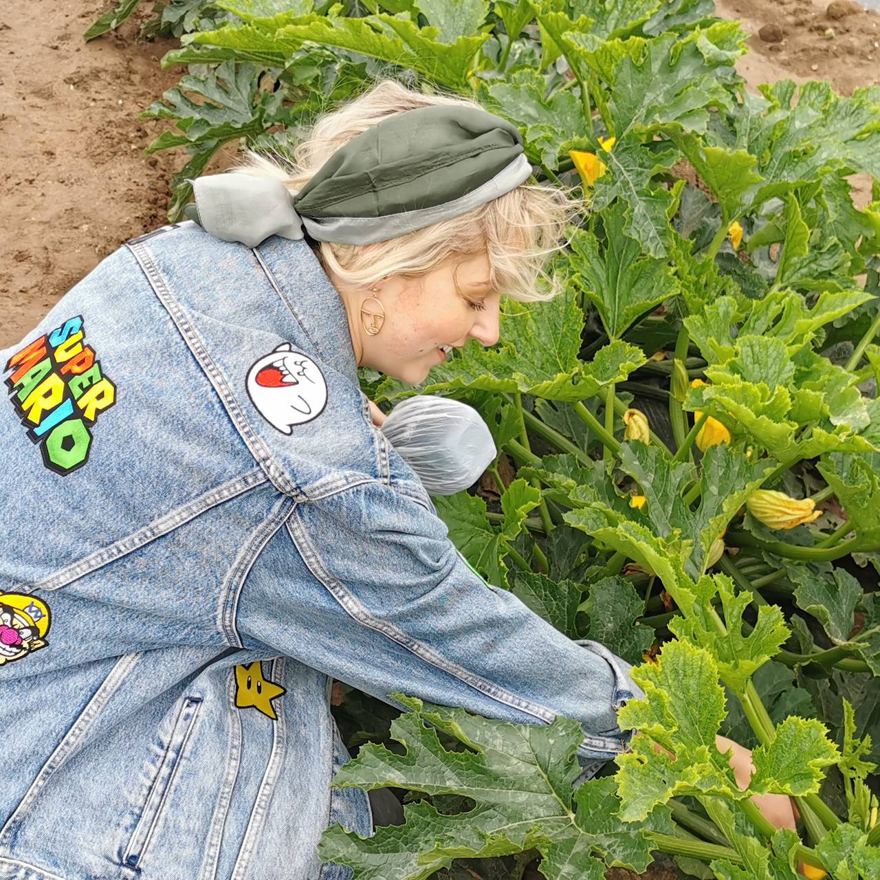 NE-WS 89.4-Reporterin Tatjana Otto pflückt sich ihr Gemüse auf dem Goldberger Hof
