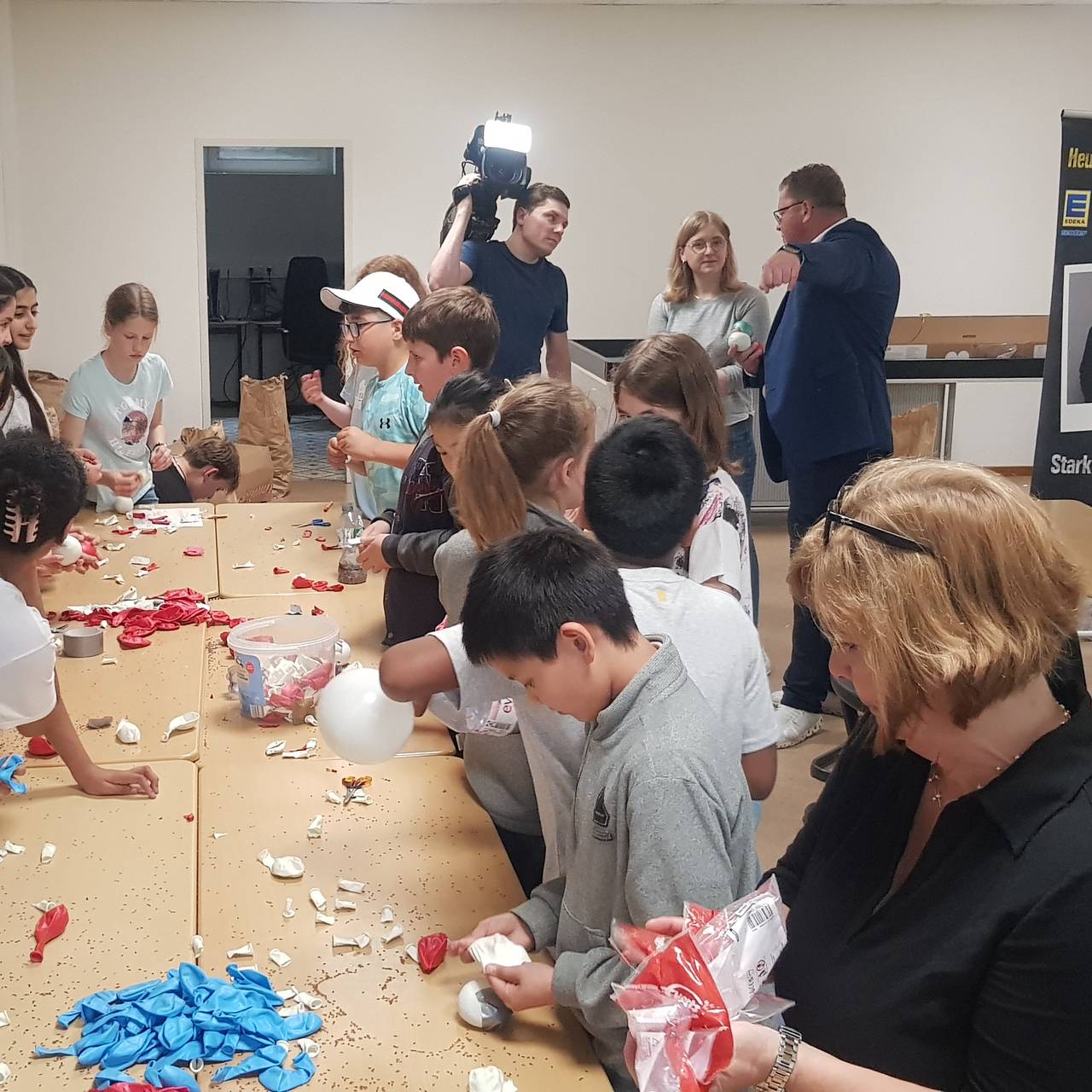 Erwartet werden für den Weltrekordversuch rund 1500 Teilnehmer. Damit die alle drei Bälle zum Jonglieren zur Verfügung haben, basteln die Schülerinnen und Schüler ingesamt 4500 Jonglierbälle selbst. Hergestellt werden die aus abgelaufenen Leinsamen, die in Luftballons gefüllt werden. 90 Gramm pro Ball. Da für einen Ball mehrere Luftballons benötigt werden, kommen etwa 20.000 Luftballons zum Einsatz. Die Motivation bei den Schülerinnen und Schülern vom Gymnasium Norf ist riesig.