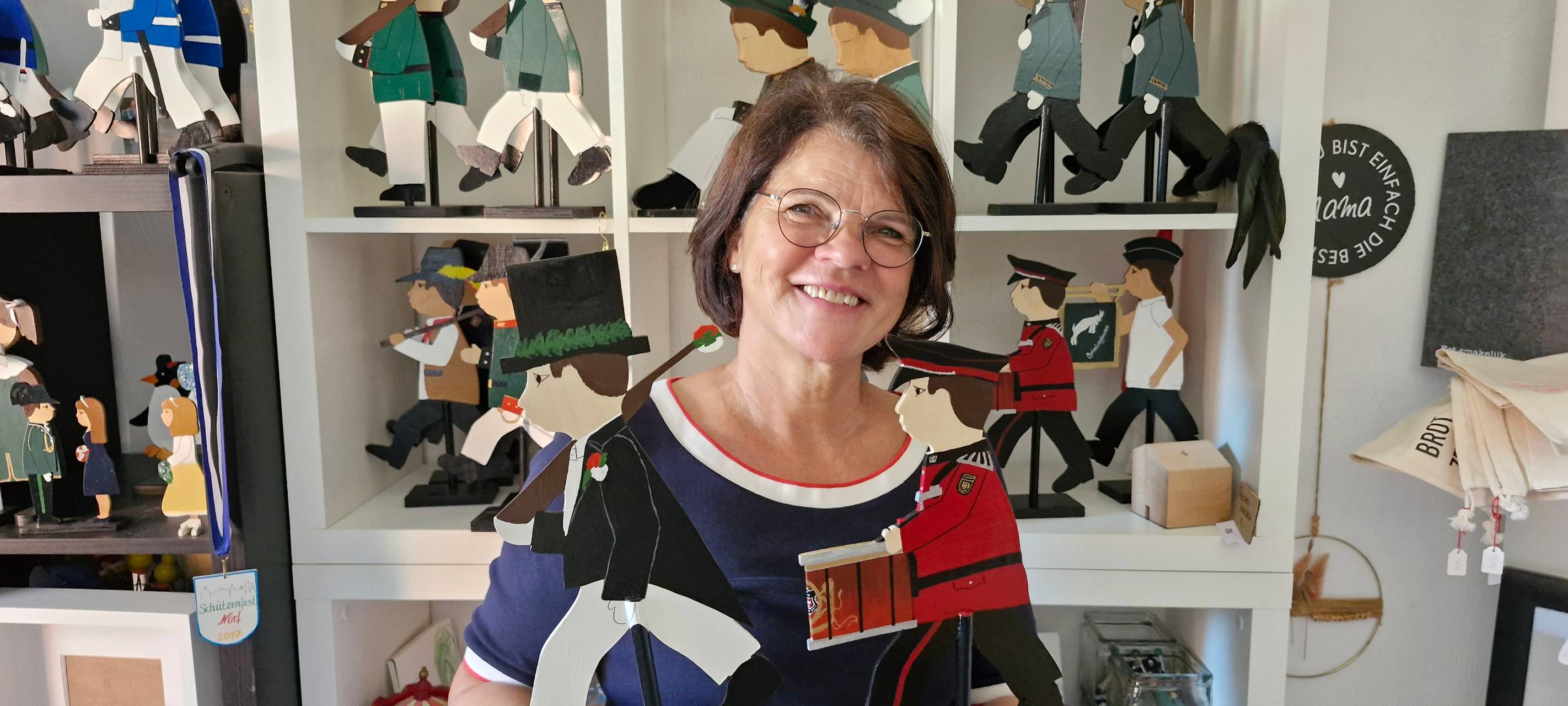 Kleine Männchen mit Schützen-Uniformen, Hütchen mit Federn, Musik-Kapellen mit Instrumenten - die Neusserin Cornelia Heuser bastelt die Schützenfiguren schon seit 25 Jahren. Angefangen hat alles mit einer Geschenk-Idee: