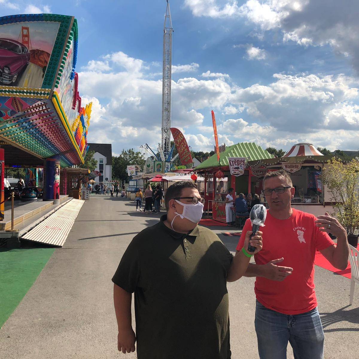 42 Schausteller stehen auf dem Pop-Up-Freizeitpark in Dormagen: Unter anderem ein Break Dance, Autoscooter und ein Geisterhotel. Auch ein Karussell für Kinder ist dabei.