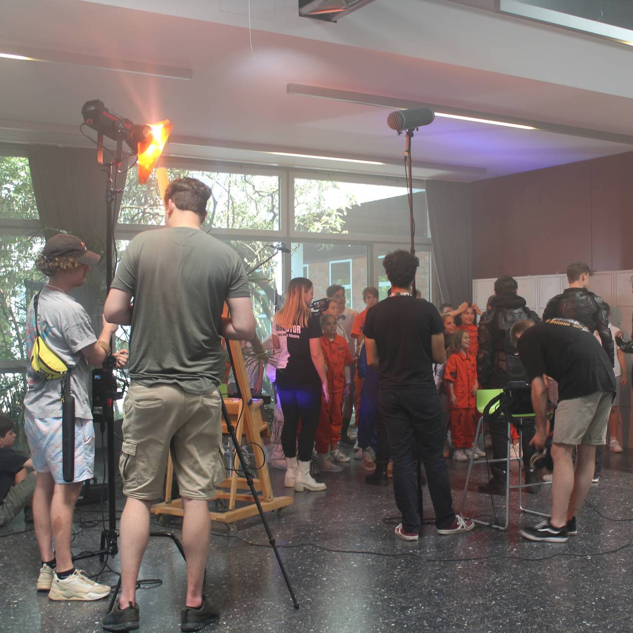 60 Schüler hatten schon einige Tage vor dem Sommerferien-Start frei. Statt im Klassenraum waren sie vor der Kamera und haben an ihrem Film gearbeitet. Etwa eine Stunde lang soll der Science-Fiction Film werden. Deswegen gibt es auch viel zu tun, sagt Schülerin Roda: