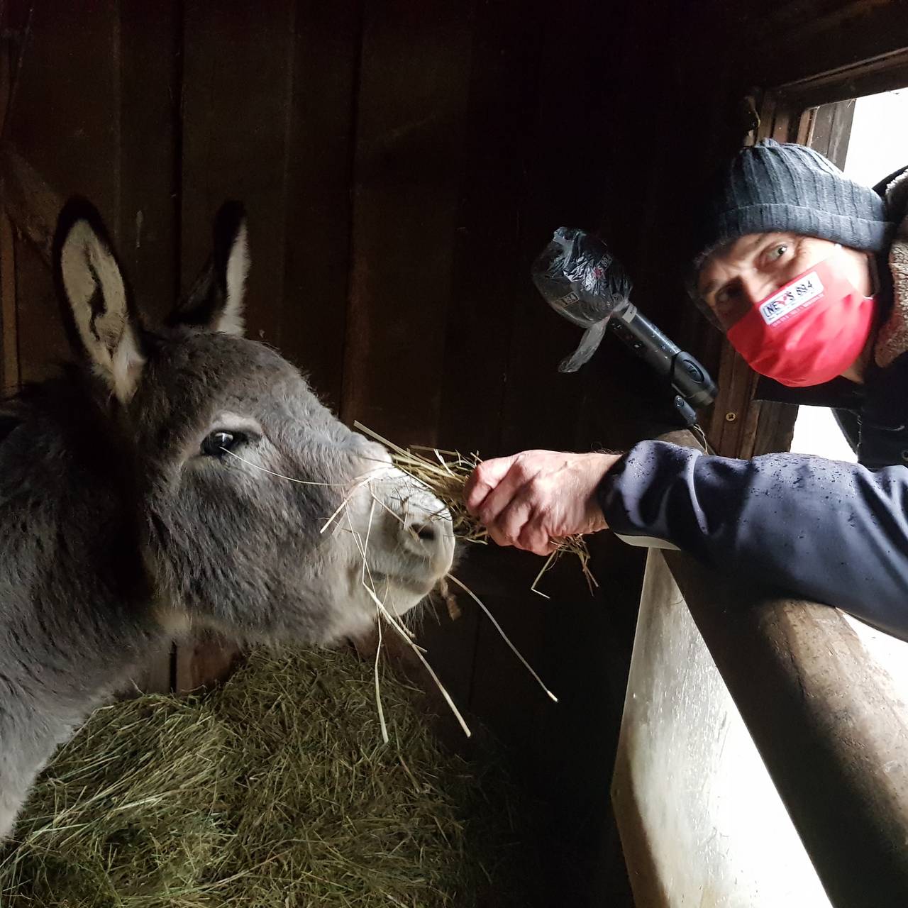 Weihnachtsbesuch bei unserem Patenesel Nepomuk