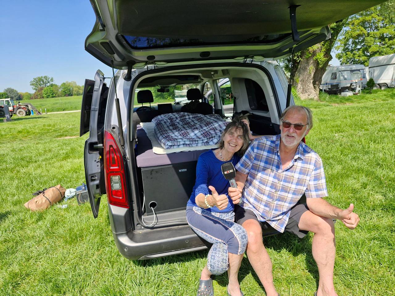 Ein Stückchen weiter auf dem Campingplatz steht der graue Van von Klaus und Dorothee aus Essen. Die beiden Rentner campen zum ersten Mal. Dorothee hat sich das nämlich zum Geburtstag gewünscht. Sie ist nämlich am Rhein groß geworden - genauer gesagt in Düsseldorf-Benrath.