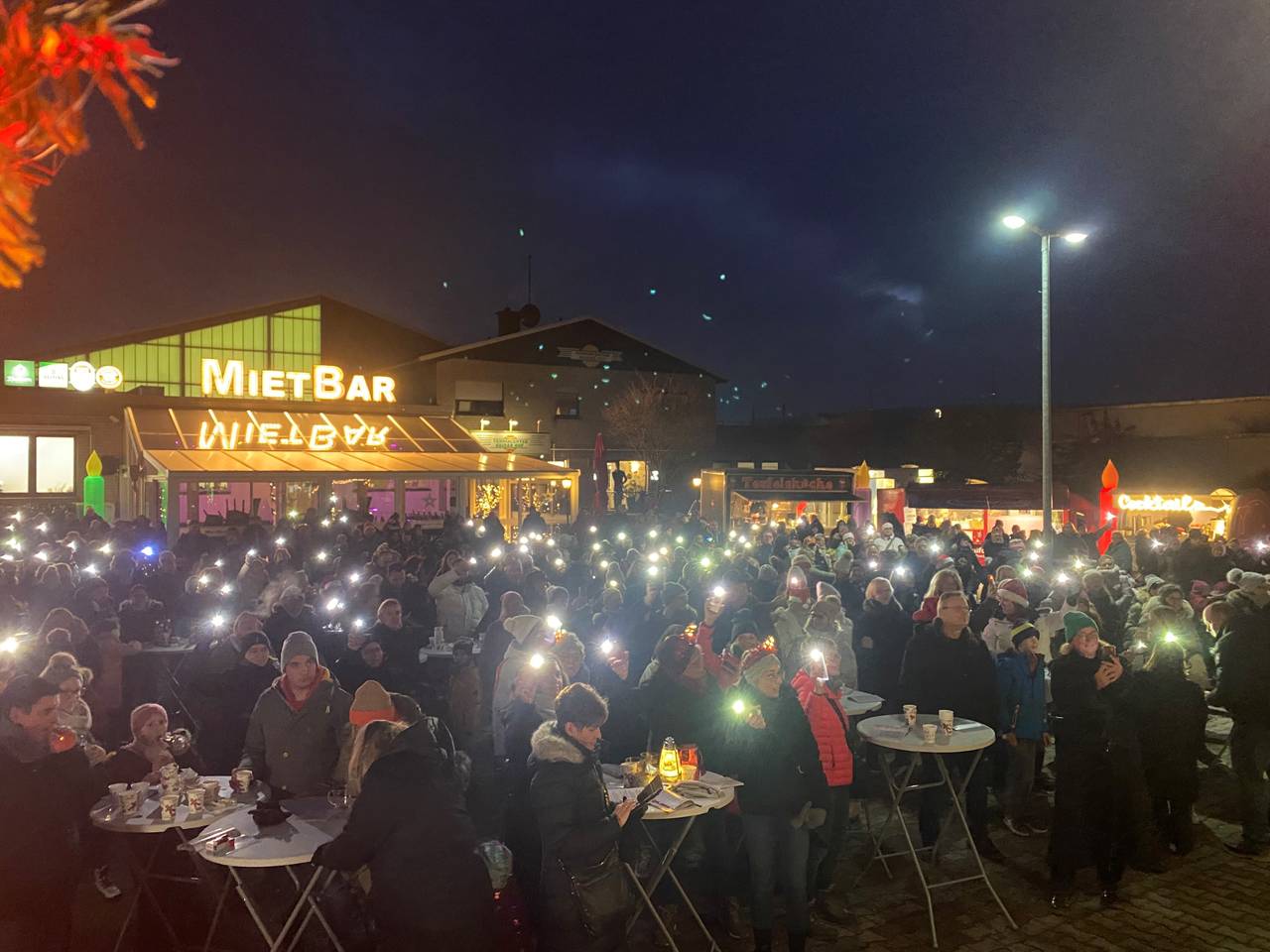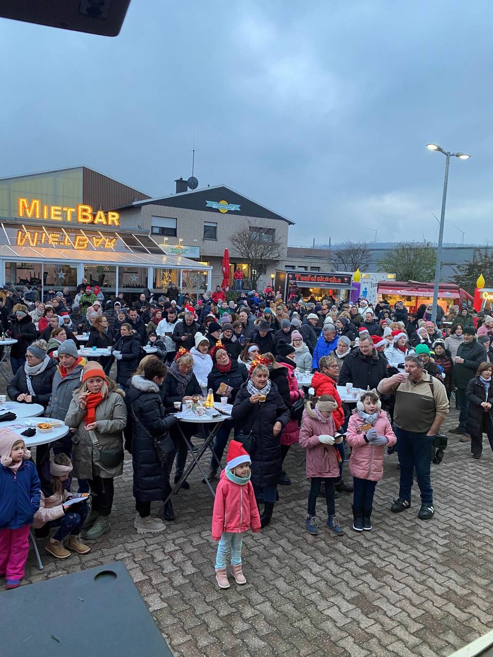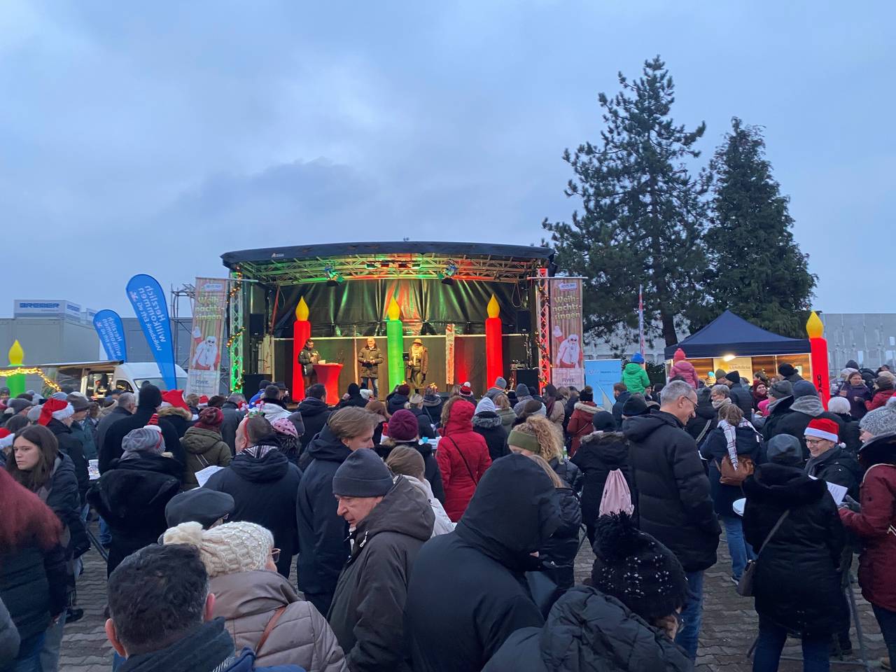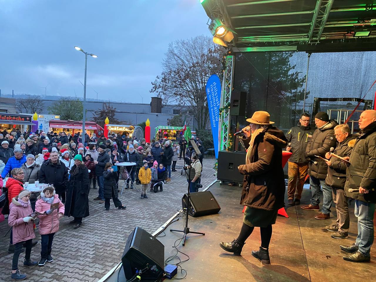 Für das leibliche Wohl wurde an verschiedensten, weihnachtlichen Foodtrucks gesorgt. Gut gestärkt, mit geölter Stimme, dem Liedheft in der Hand und vor allem mit der Unterstützung von Eventsängerin Sara van Hellemond auf der Bühne, konnte es dann losgehen. Gesungen wurde so ziemlich jedes Weihnachtslied: Neben deutschen Klassikern wie "In der Weihnachtsbäckerei", "Stille Nacht, heilige Nacht" und "Oh Tannenbaum", durften selbstverständlich auch ein paar englischsprachige Hits wie "All i want for Christmas is you" oder "Let it snow" nicht fehlen. Die Liedhefte durften mit nach Hause genommen werden, damit auch in ein paar Tagen unter dem Weihnachtsbaum nochmal kräftig gesungen werden kann.