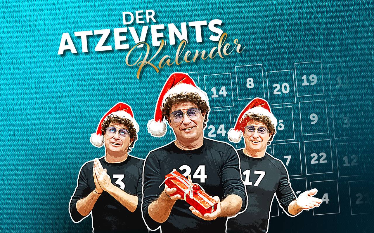 Wir öffnen mit euch jeden Tag ein Türchen. Dazu haben wir euch Deutschlands besten Türchensteher organisiert. Atze Schröder bringt uns seinen Atzeventskalnder jeden Morgen frei Haus. Lustig, (be)sinnlich und mit Locken. Und jetzt ran ans Türchen. Viel Spaß.