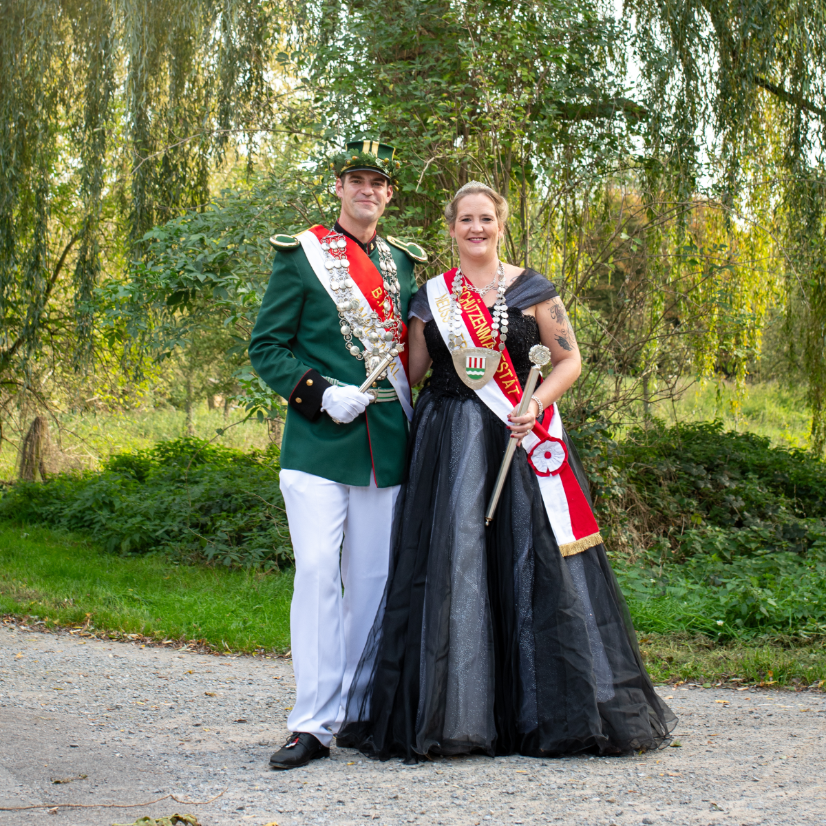 Für manche sind Frauen in Schützenuniformen noch undenkbar. Darüber, ob Frauen überhaupt mitmarschieren dürfen, wurde in Erfttal aber nie diskutiert. Beim Bürger- und Schützenverein in Erfttal ist das schon seit der Gründung vor 50 Jahren so. Die Frauen stehen nicht nur am Rand herum, sondern laufen wie die Männer auch mit. Ganze drei Damenzüge gibt es: Die Dianas, die Frechen Röskes und die Erfttaler Mädchen. Jetzt haben sie auch Deutschlands erste DOPPEL-Schützenkönigin. Jennifer Zahn hat 2023 beim BSV Erfttal den Vogel abgeschossen und darf sich jetzt ganz offiziell "Ihre Majestät Jennifer die erste Zahn" nennen. Ihren zweiten Titel hat sie durch ihren Mann David Zahn (38) bekommen. David hat den Vogel im selben Jahr beim BHV Gnadental abgeschossen und ist dort ebenfalls Schützenkönig geworden. Daher ist Jennifer jetzt doppelte Schützenkönigin. Eigentlich ist Jennifer Empfangskraft bei der Podologie und Ergotherapie. In ihrer Freizeit liebt sie aber das Schützenwesen. Schon als Kleinkind ist sie beim BSV Erfttal mitgelaufen und macht jetzt seit gut zwei Jahren wieder als Schützin mit. Den Plan doppeltes Schützenpaar zu werden hatten sie gemeinsam: