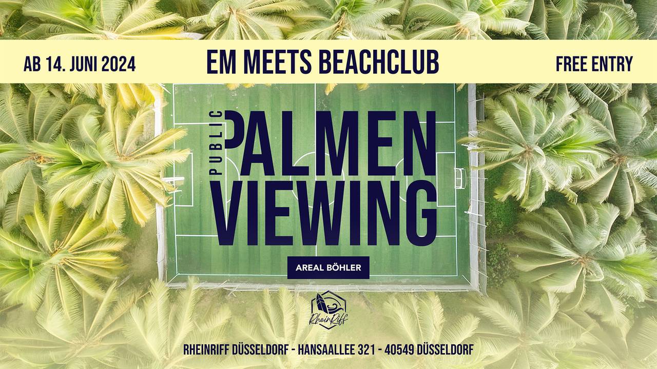 Während der gesamten EM präsentieren das RheinRiff und das Areal Böhler das große Palmenviewing bei freiem Eintritt. Verfolge die Spiele der EM direkt an der Welle oder bei uns im Beachclub. Mit der neuen Outdoor-Bar verpasst Du außerdem keinen wichtigen Moment und hast jederzeit den perfekten Blick auf das Geschehen.Die Eröffnung der Leinwand findet am 14. Juni 2024 mit dem Eröffnungsspiel Deutschland gegen Schottland statt. (Original-Mitteilung des RheinRiffs)