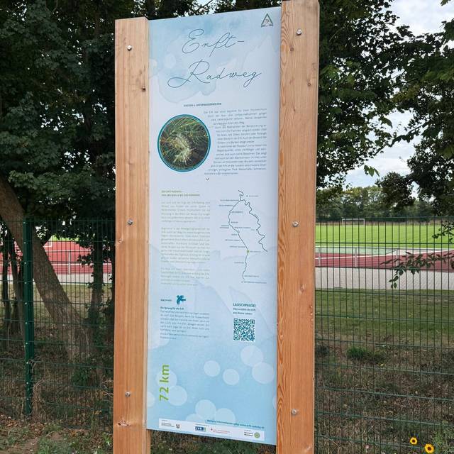 Wer sich gerne sportlich betätigt - für den ist der Erftradweg eine tolle Option. 110 Kilometer von Nettersheim, über Euskirchen und Kerpen bis zu uns nach Neuss. Der Weg wurde, aufgrund von Hochwasser, neu gemacht. Bei der Sanierung wurden QR-Codes an einigen Stellen ergänzt, sodass man in kurzen Hörspielen auf lustige Weise Wissen vermittelt bekommt. Auf dem Weg liegen kleine Ausflugsziele, wie der Alpen Park und der Kinderbauernhof oder in Kerpen eine Kartbahn oder in Euskirchen eine Therme. Andreas Fazit: