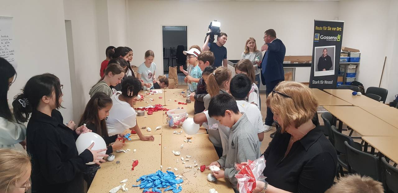 Erwartet werden für den Weltrekordversuch rund 1500 Teilnehmer. Damit die alle drei Bälle zum Jonglieren zur Verfügung haben, basteln die Schülerinnen und Schüler ingesamt 4500 Jonglierbälle selbst. Hergestellt werden die aus abgelaufenen Leinsamen, die in Luftballons gefüllt werden. 90 Gramm pro Ball. Da für einen Ball mehrere Luftballons benötigt werden, kommen etwa 20.000 Luftballons zum Einsatz. Die Motivation bei den Schülerinnen und Schülern vom Gymnasium Norf ist riesig.