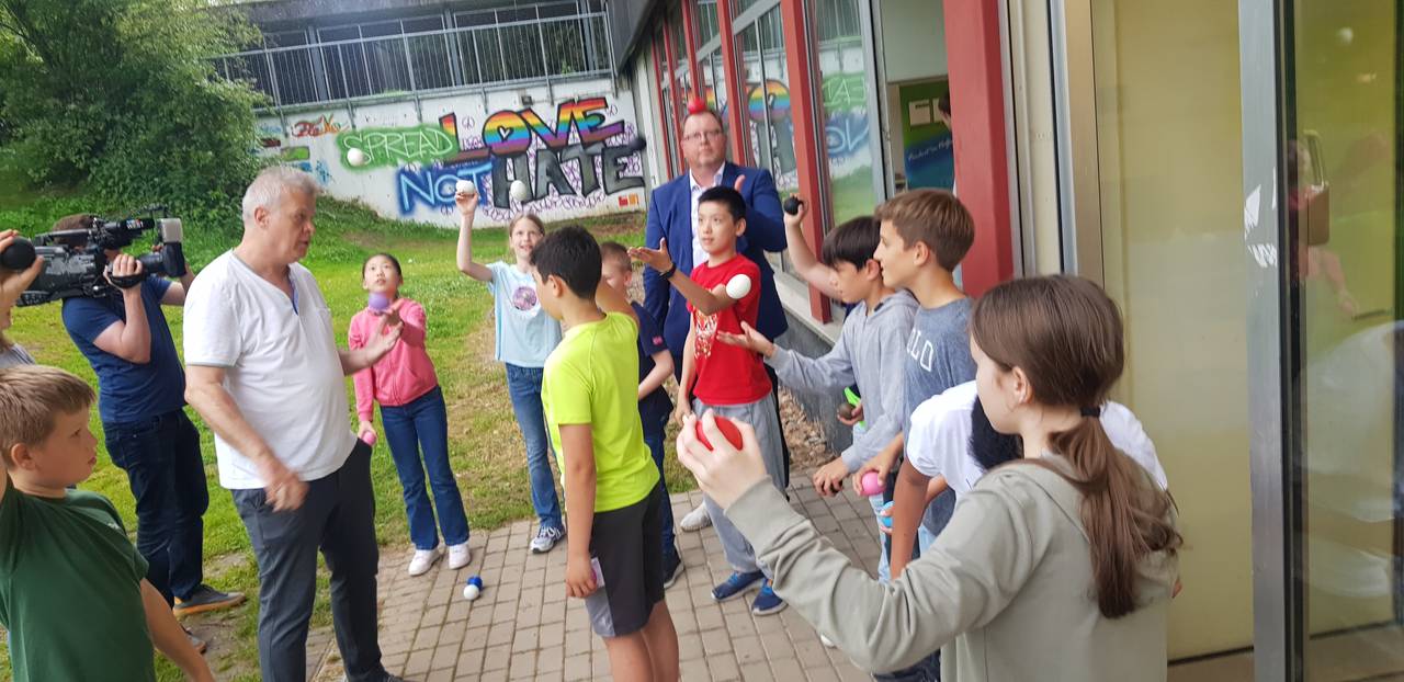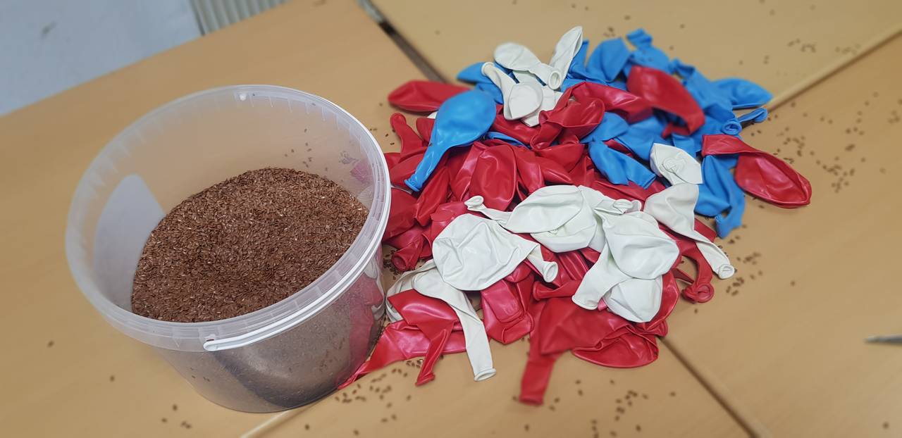 4500 Jonglierbälle von den Schülern selbst gebastelt