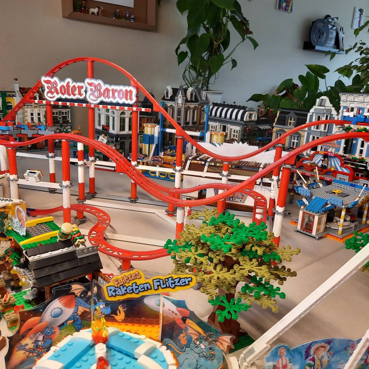Auf einem großen Esstisch steht eine komplette Kirmes aus Lego. Dort gibt es zum Beispiel eine 1,50 Meter lange Achterbahn oder auch ein Riesenrad. Die komplette Kirmes besteht mittlerweile aus 100.000 Steinchen. Angefangen hat sein Hobby, als er eine Aquarium-Deko aus Lego baute. Anschließend waren ein paar Lego Steine über und das gab den Startschuss für den Kaarster Kirmesbauer. Daraus ist mittlerweise ein Geschäft entstanden. Er verkauft auf seiner Seite Bauanleitungen, Sticker, Schriftzüge und alles was nicht aus Lego gebaut werden kann. Seine Käufer sind aber keine Kinder, sondern Erwachsene und die kommen vor allem aus Belgien und der Schweiz.