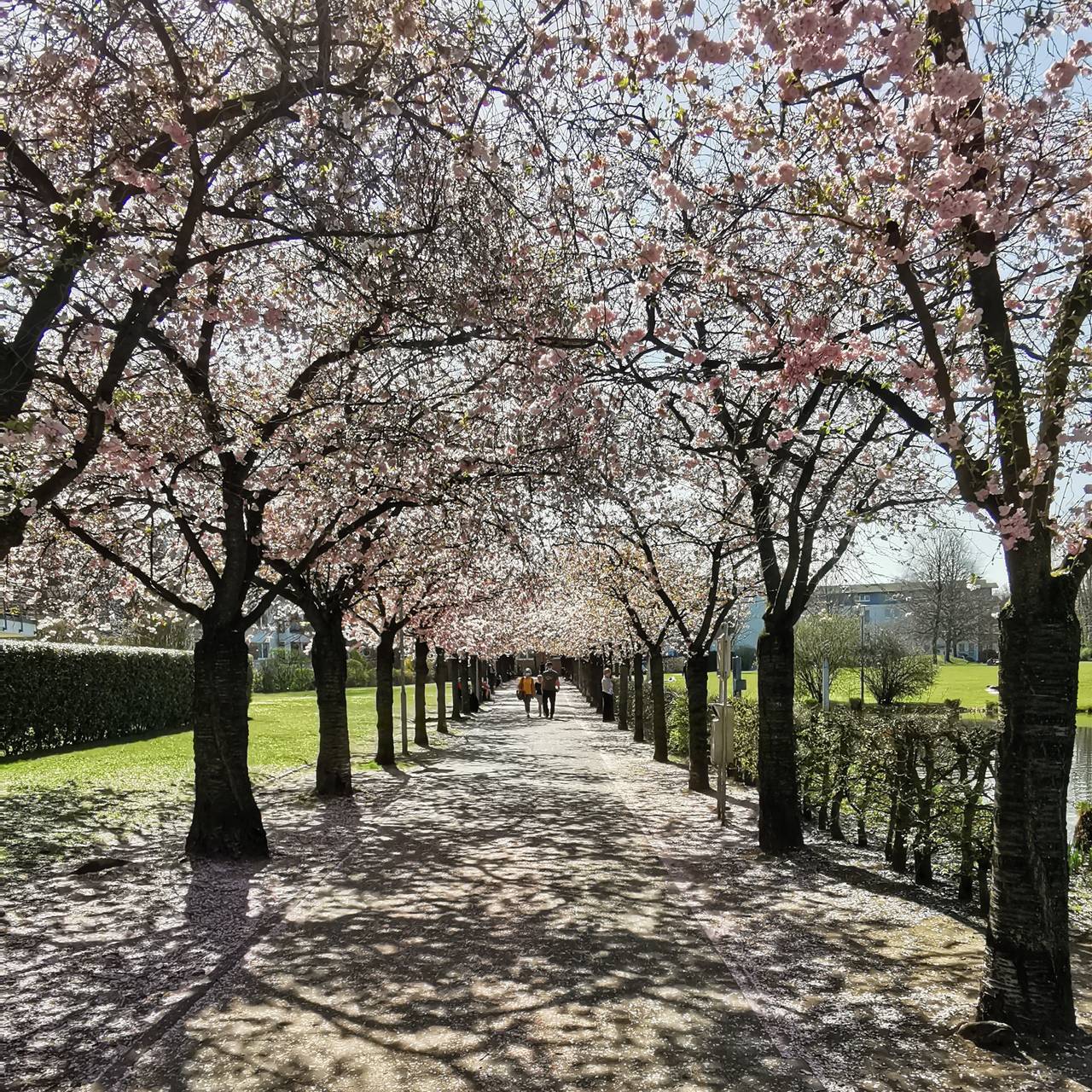 Die La-Madeleine-Allee in Kaarst ist für kurze Zeit im Jahr ein echter Foto-Hotspot. Denn wenn die Kirschbäume blühen, gucken sich das nicht nur die Kaarster an. Zum Teil gibt es regelrechten Foto-Tourismus. Und nicht nur die Instagram-Freaks schauen dann vorbei.