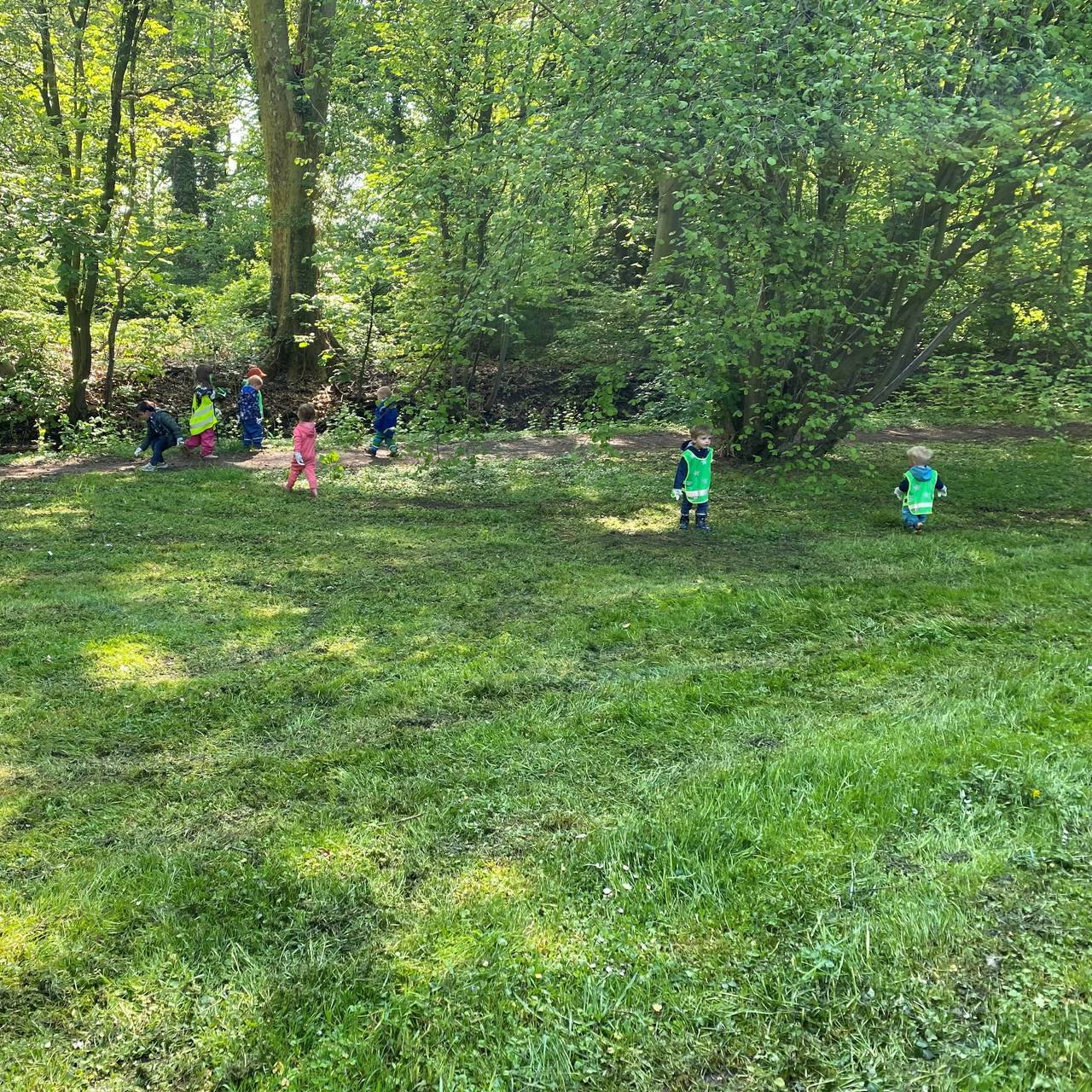 Jedes Kind hat im Garten der KiTa Kiku eine Weste und Gummihandschuhe angezogen bekommen. Dann ging es los. Zunächst sammelten wir den Müll auf der direkt daneben liegenden Schule ein. Von da aus ging es weiter an den Norfbach. Gefunden haben die Kinder allerlei Unrat. Alte Trinkpäckchen, Bonbonpapier oder sogar ein meterlanger Gartenschlauch lag im Gebüsch. Manche Kinder waren zwar nicht so erfolgreich beim Müll sammeln, aber dann wurden Grasbüschel vom Rasenmähen oder heruntergefallene Blätter zu Bio-Müll - die Hauptsache war: Müllsammeln macht Spaß! Nach dem anderthalb Stündigen Ausflug ging es wieder glücklich in die KiTa zurück. Da wartete schon das Mittagessen auf alle.