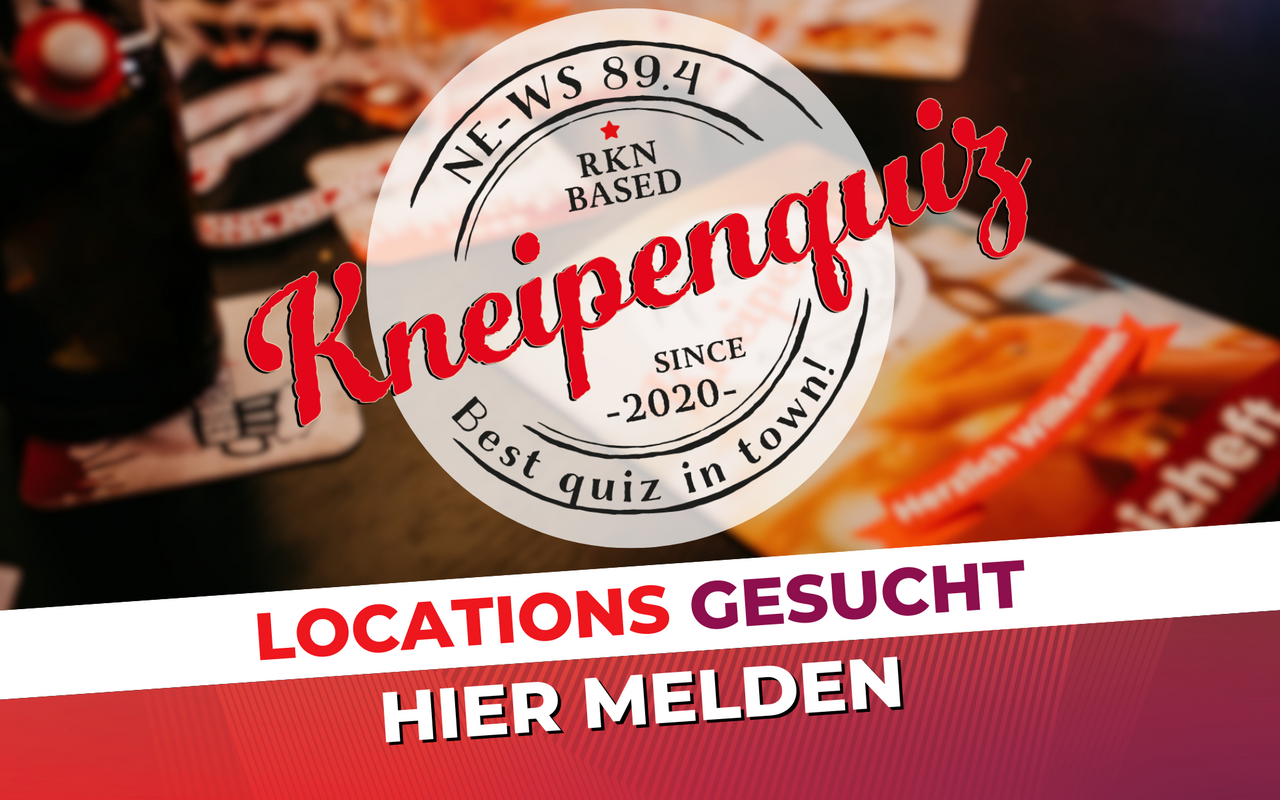 Das NE-WS 89.4-Kneipenquiz ist seit 2020 auf Tour durch den Rhein-Kreis Neuss. Erste Quizfrage: Wo sollen wir Station machen? Meldet euch als Kneipe/Location bei uns ...