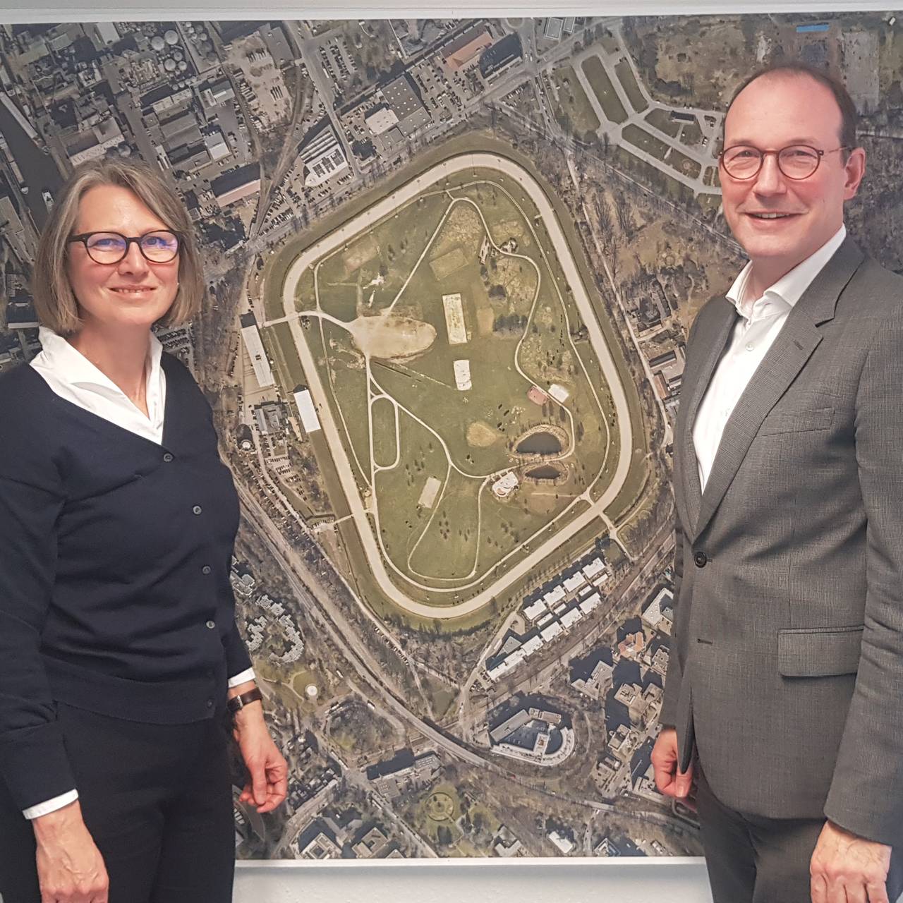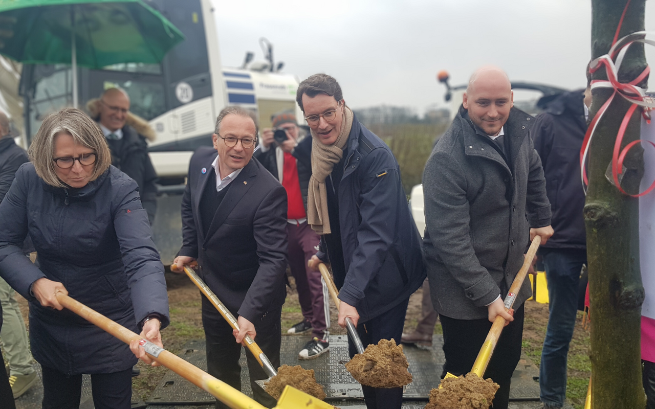 Und nach dem offiziell ersten Baum wurden in weiteren Schritten hunderte weitere Bäume gepflanzt. Alles heimische Sorten. Ulme, Linde, Esche und Ahorn zum Beispiel. Die Bäume sollen entlang des Sandbahn-Geläufs der Rennbahn wachsen. Das Sand-Geläuf und die Richtertürme bleiben übrigens erhalten. Sie sollen die Erinnerung an 150 Jahre Pferdesport auf dem Gelände bewahren. Insgesamt sollen laut den Landesgartenschau-Geschäftsführern Annette Nothnagel und Christoph Hölters rund 2.200 neue Bäume gepflanzt werden. Das gesamte Landesgartenschau-Gelände ist etwa so groß wie rund 50 Fußballfelder.