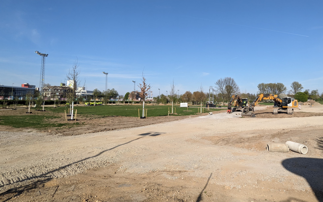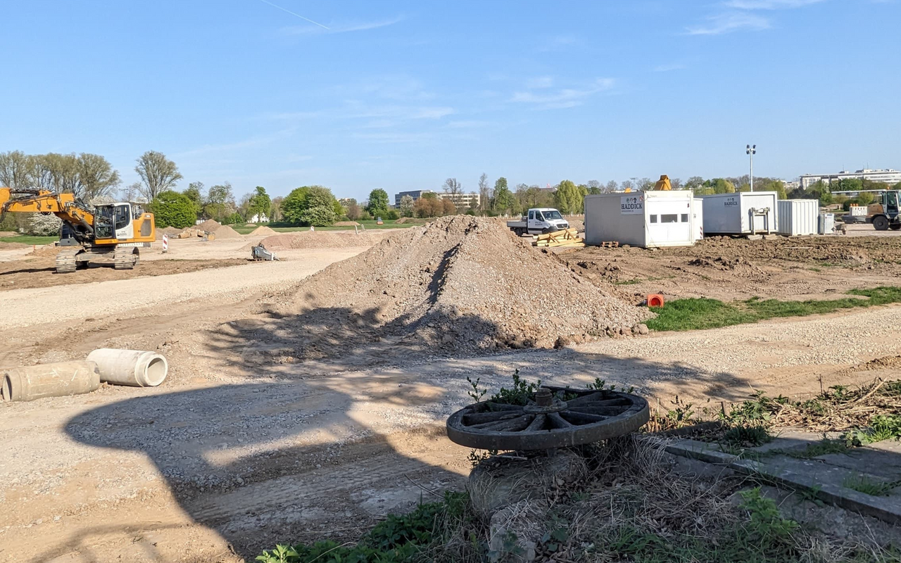 Aktuell sind auf dem Gelände noch mehr Baustellenfahrzeuge, Bauarbeiter und Co zu sehen als bunte Blumen. Das soll in einem Jahr anders sein, dann startet die Landesgartenschau. Der Countdown bis zur Eröffnung am 16. April 2026 läuft. Deswegen laufen die Bauarbeiten auf Hochtouren. So sind inzwischen viele Bäume gepflanzt und auch der See ist inzwischen fertig angelegt. Außerdem entstehen langsam die Sportbereiche. Gefühlt an jeder Ecke wird aktuell gebaut. Bei einem Baustellenrundgang haben wir uns – zusammen mit über 100 Interessierten – einen Eindruck vom aktuellen Stand gemacht. Die vielen Bäume und Pflanzen müssen noch etwas wachsen. So langsam nimmt das Gelände rund um die ehemalige Rennbahn aber mehr und mehr Form an.