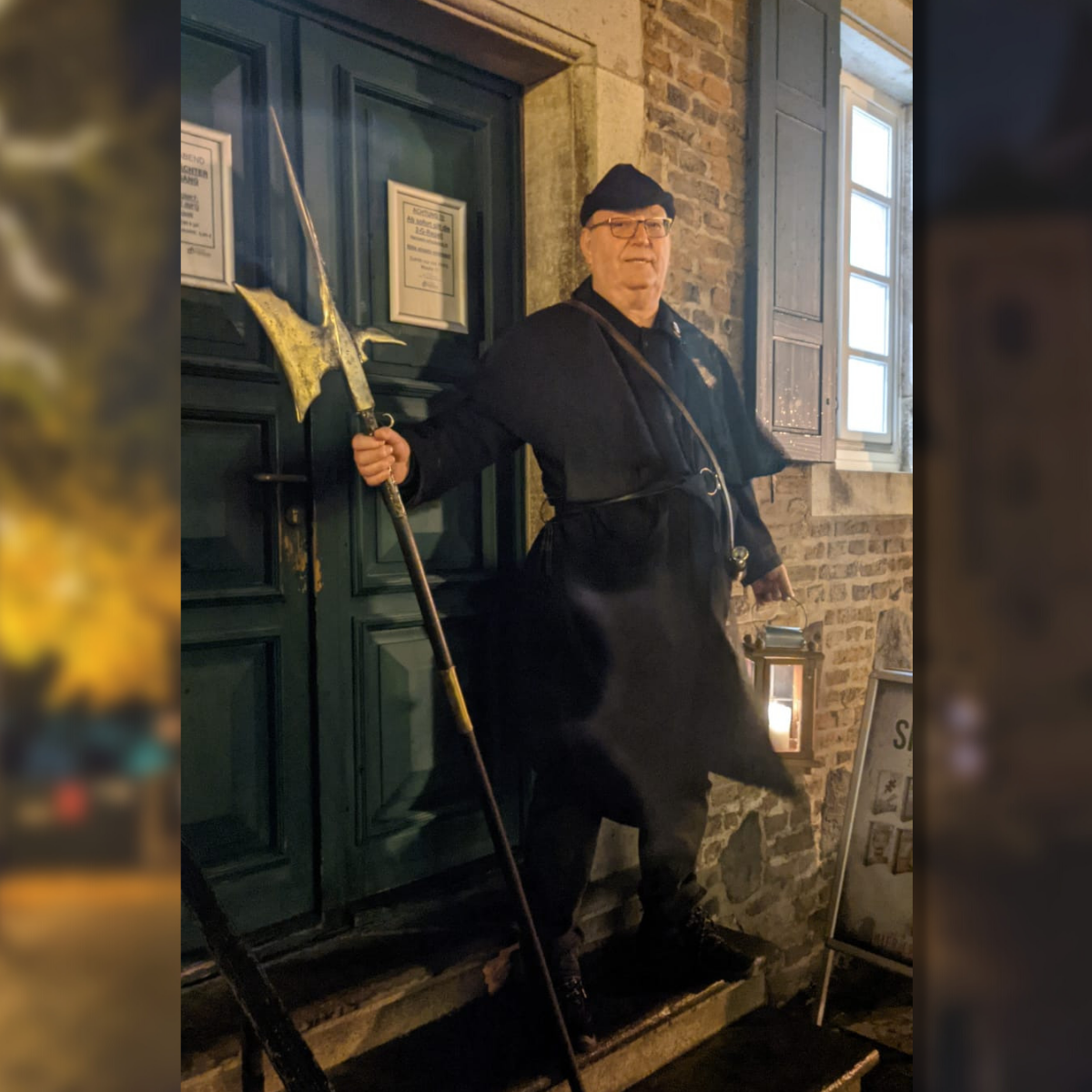Bei einem solchen Rundgang haben wir Nachtwächter Wilfried Müller begleitet. Es ging dabei vorbei an historischen Orten der Stadt, wie dem Treidelpfad oder dem Marktplatz, auf dem früher auch mal ein Galgen stand und dem Hospitalplatz. Ganz dunkel ist es aber nicht. Lichter und Schmuck sorgen dabei für eine weihnachtliche Atmosphäre.