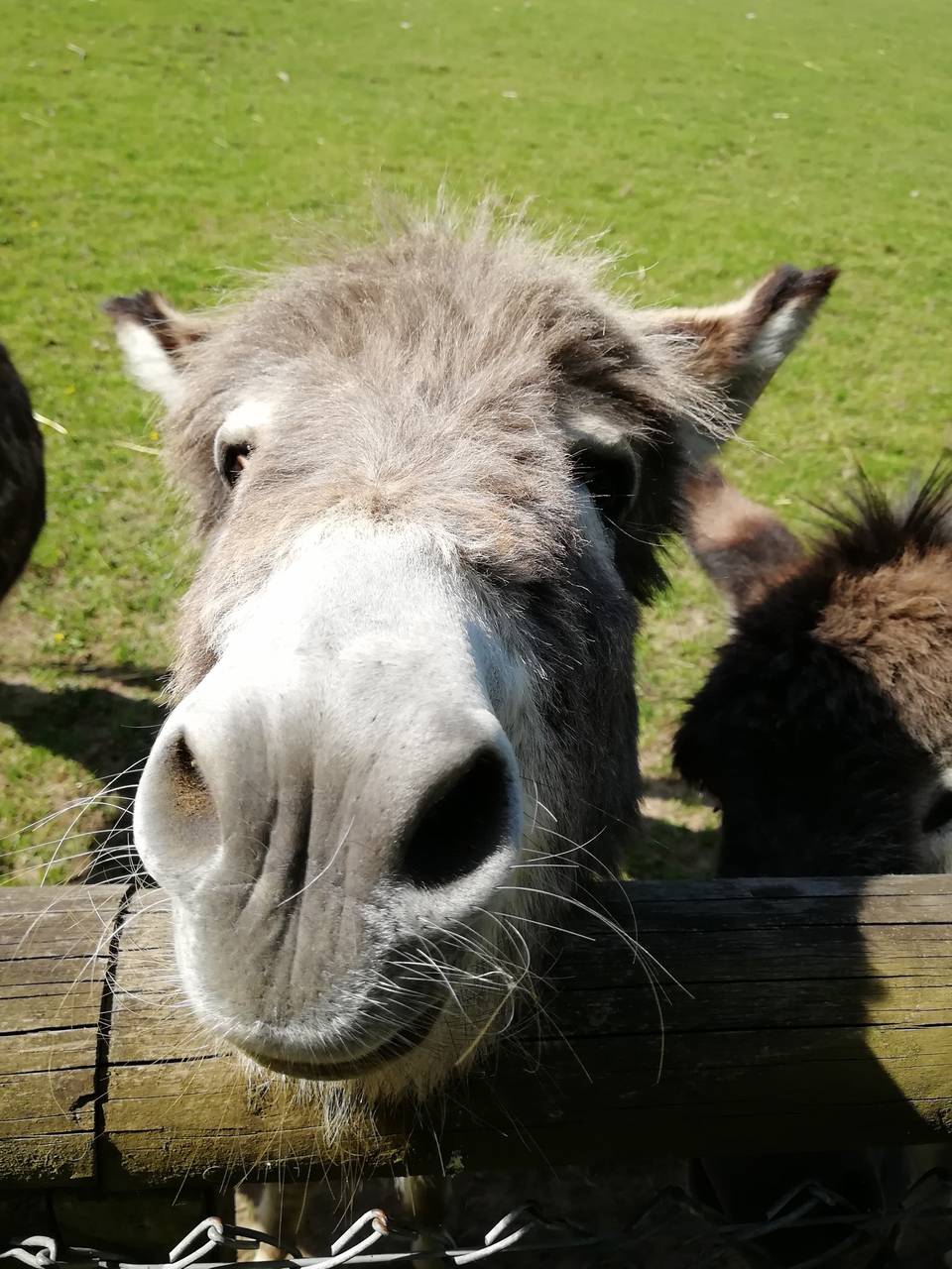 Auch im Kinderbauernhof müssen natürlich die Abstandsregeln eingehalten werden. Deswegen kommen Besucher jetzt nur noch durch den Haupteingang rein, damit sie gezählt werden können. Und sie dürfen sich nur in eine Laufrichtung bewegen. Auf dem Spielplatz und an den Picknickplätzen müssen sie ebenfalls auf die Abstände achten. Die Tiere haben die menschlichen Besucher während der wochenlangen Schließung regelrecht vermisst und sich gelangweilt, sagt Leiter Frank Lammerz. Die Schweine hätten deswegen sogar eine Pflasterfläche auseinandergenommen - aus Langeweile. Die Esel und unser Patentier Nepomuk hatten es derweil besser: Sie sind auf einem öffentlich zugänglichen Bereich untergebracht, sodass sie trotz geschlossenen Bauernhofes besucht und gefüttert werden konnten: