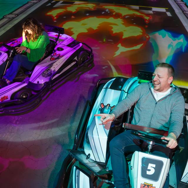 Das BattleKart-Zentrum in Neuss befindet sich in einer großen Halle, die mit rund 60 Beamern ausgestattet ist. Diese projizieren nicht nur die Rennstrecke, sondern auch thematische Elemente wie Pflanzen oder Hindernisse an die Wände. Neben klassischen Rennen gibt es weitere Spielmodi, die unterschiedliche Herausforderungen bieten.