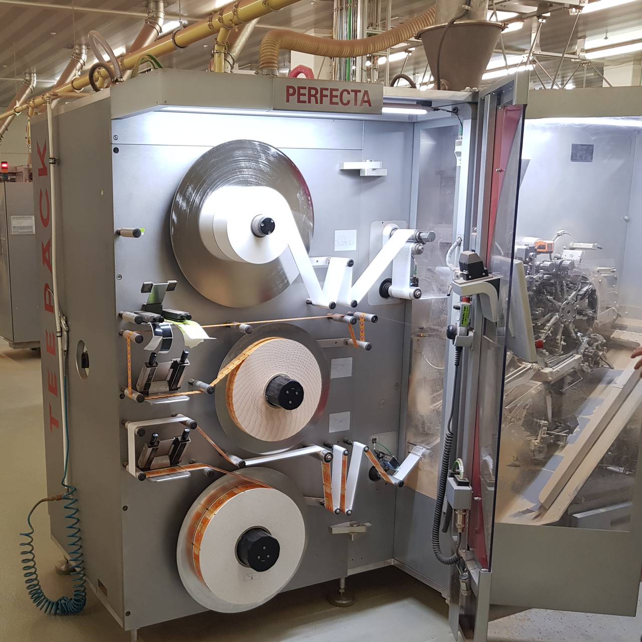 Der Tee wird eingebeutelt. Die Teebeutelmachinen werden in Meerbusch-Büderich bei Teepack produziert. Die Maschine verpackt 380 Teebeutel oder 20 fertige Packungen in der Minute.