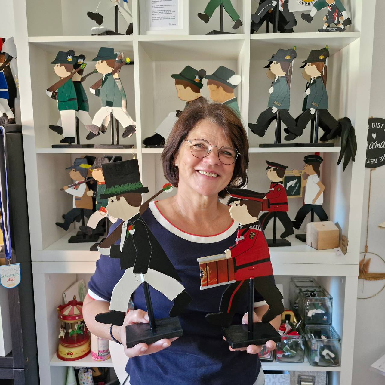Kleine Männchen mit Schützen-Uniformen, Hütchen mit Federn, Musik-Kapellen mit Instrumenten - die Neusserin Cornelia Heuser bastelt die Schützenfiguren schon seit 25 Jahren. Angefangen hat alles mit einer Geschenk-Idee: