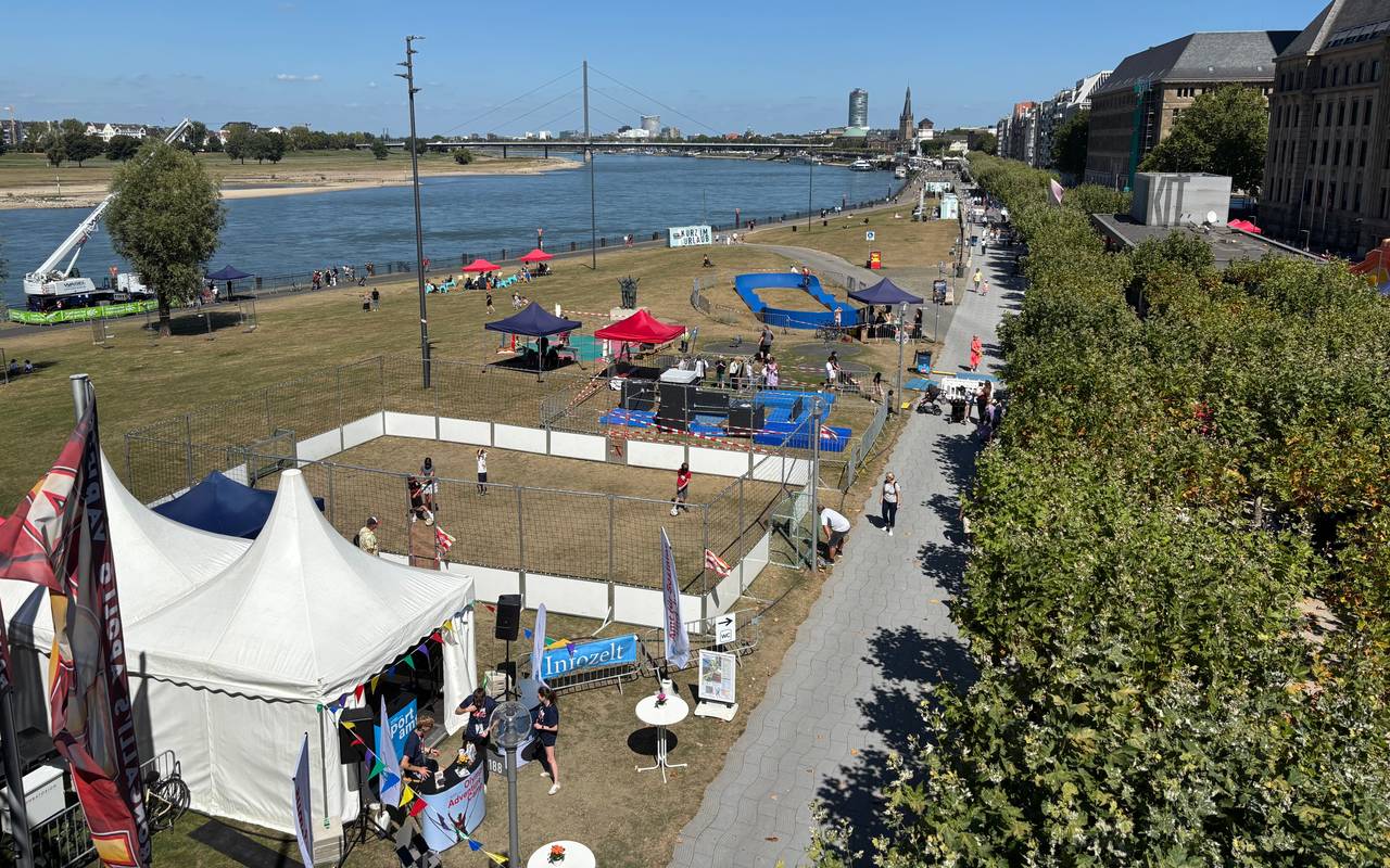 In Düsseldorf wird es zum Ende der Sommerferien nochmal sportlich: Bis zum 23. August können Kinder und Jugendliche an der Rheinkniebrücke über 50 Sportarten ausprobieren.
