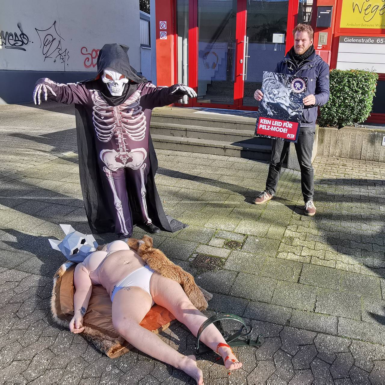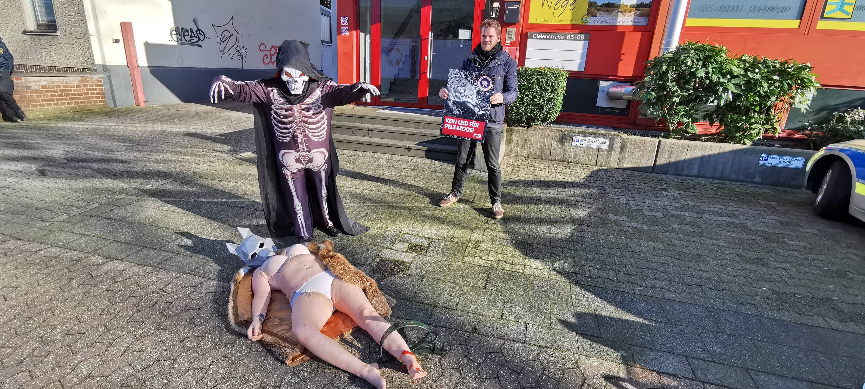 Die Tierschutzorganisation PETA hat am Dienstag (21.01.) in Neuss mit einer Protest-Aktion gegen das Tragen von Pelzen demonstriert.