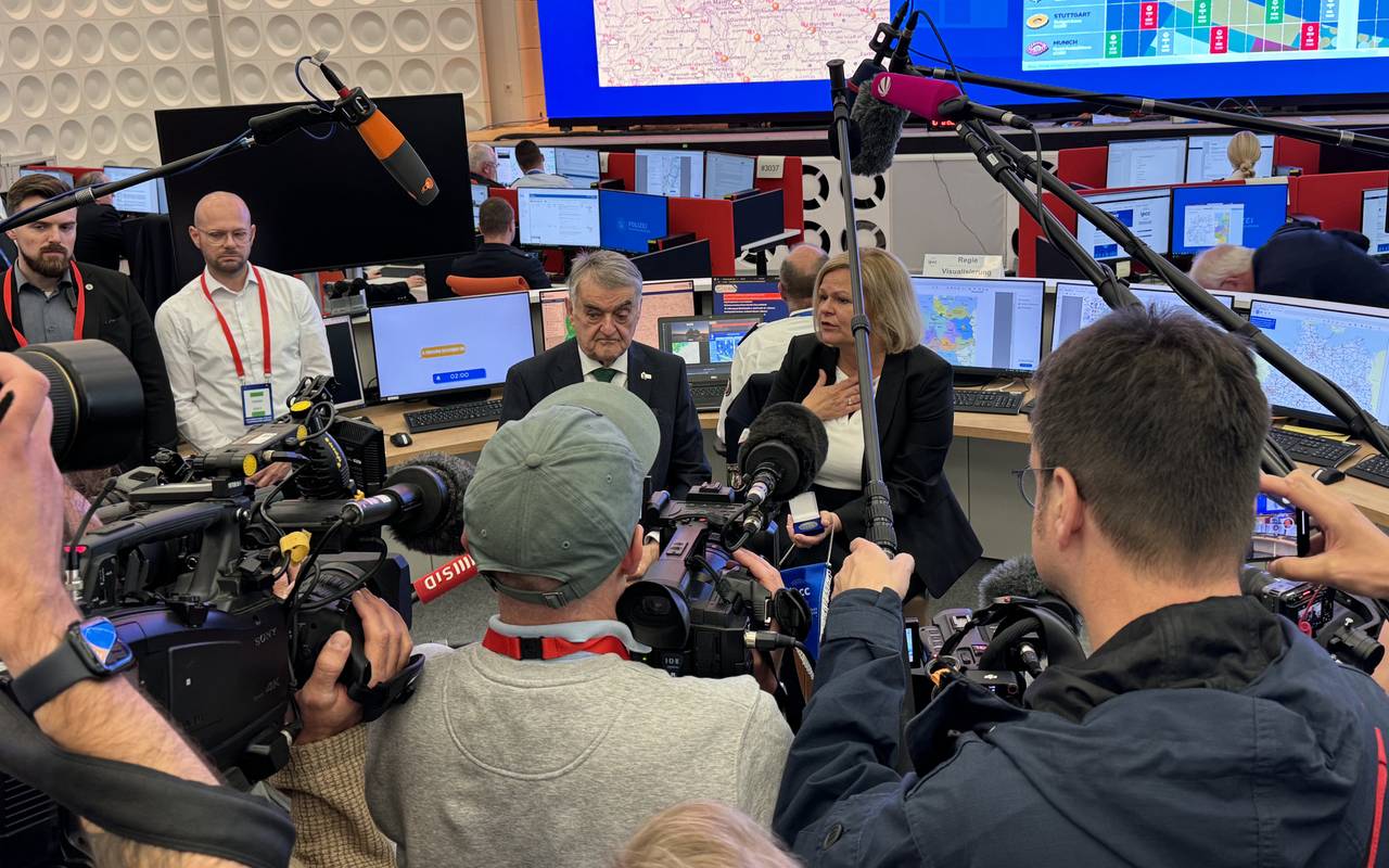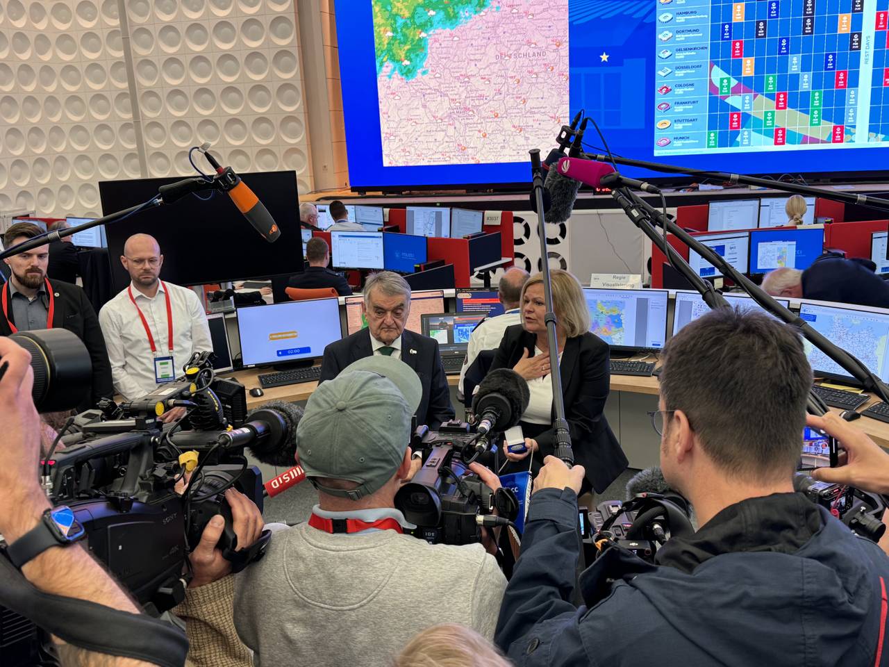 Kurz vor dem ersten EM-Spiel am Freitag (14.06.) hat Bundesinnenministerin Faeser das Polizei- Lagezentrum in Neuss offiziell eröffnet - zusammen mit NRW-Innenminister Reul. Im sogenannten sogenannten International Police Cooperation Center laufen alle sicherheitsrelevanten Informationen zusammen und werden von hier aus gesteuert. Vor dem „IPCC“ ist kurz vor EM-Start richtig viel los. Um die 30 neue Einsatzfahrzeuge mit IPCC-Schriftzug parken vor dem Gebäude. Bundesinnenministerin Faeser betonte bei der Eröfnnung erneut den personellen Kraftakt: