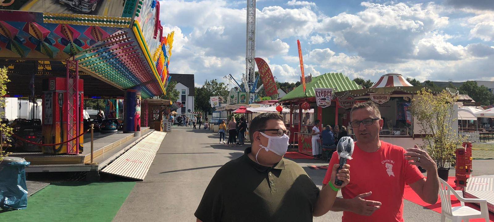 42 Schausteller stehen auf dem Pop-Up-Freizeitpark in Dormagen: Unter anderem ein Break Dance, Autoscooter und ein Geisterhotel. Auch ein Karussell für Kinder ist dabei.