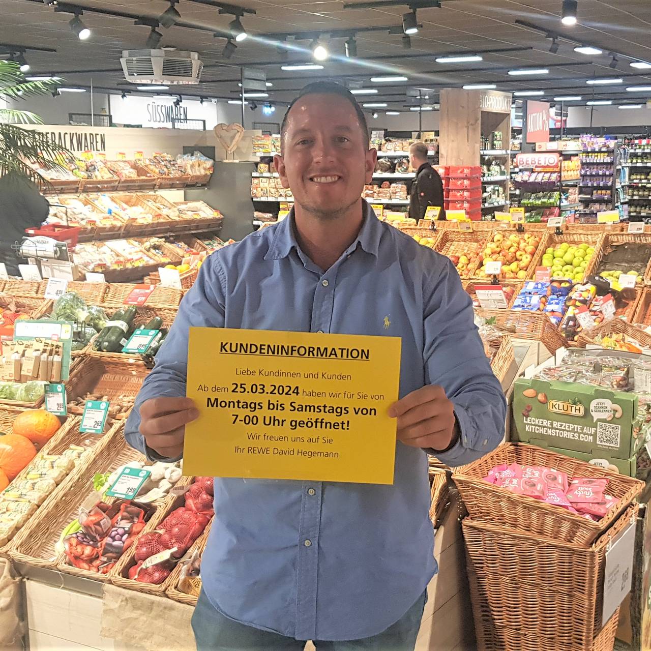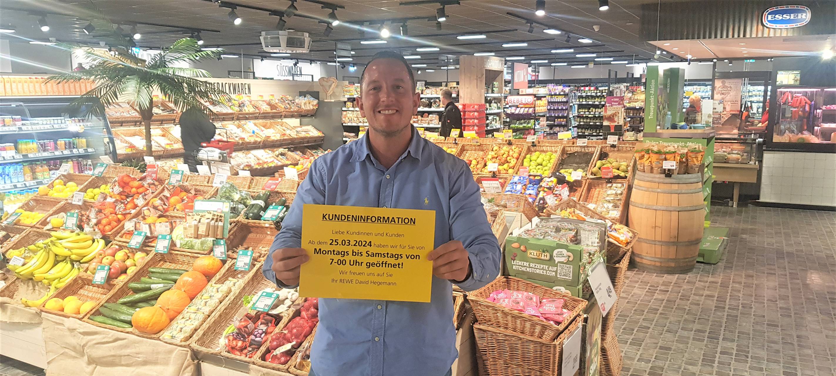 David Hegemann ist der neue Inhaber des Rewe-Marktes in Meerbusch-Büderich. Ab Montag (25.03.) will er den Markt bis Mitternacht geöffnet lassen.