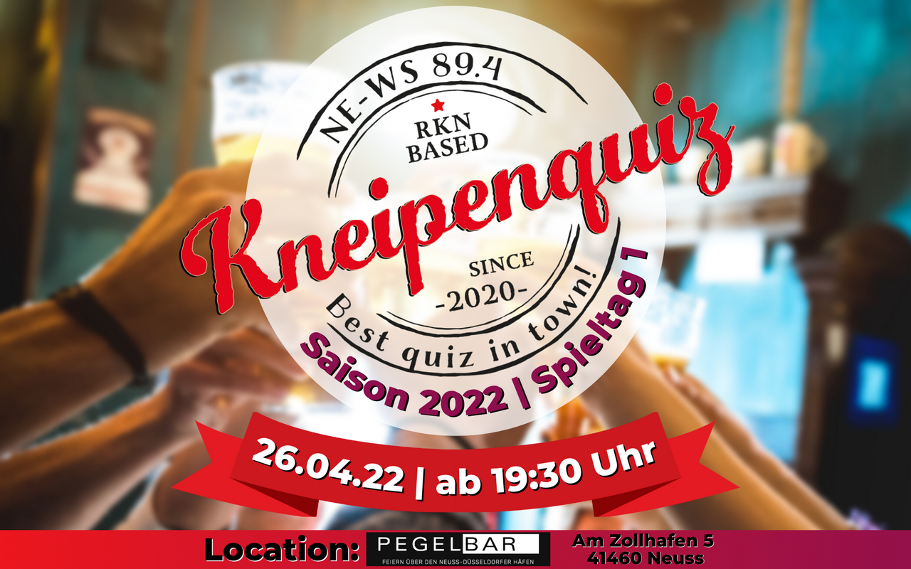 Am Dienstag (26.04.22) ist unsere Kneipenquiz-Saison 2022 gestartet. Wir waren zu Gast in der Neusser Pegelbar. Die Ergebnisse findet ihr hier.