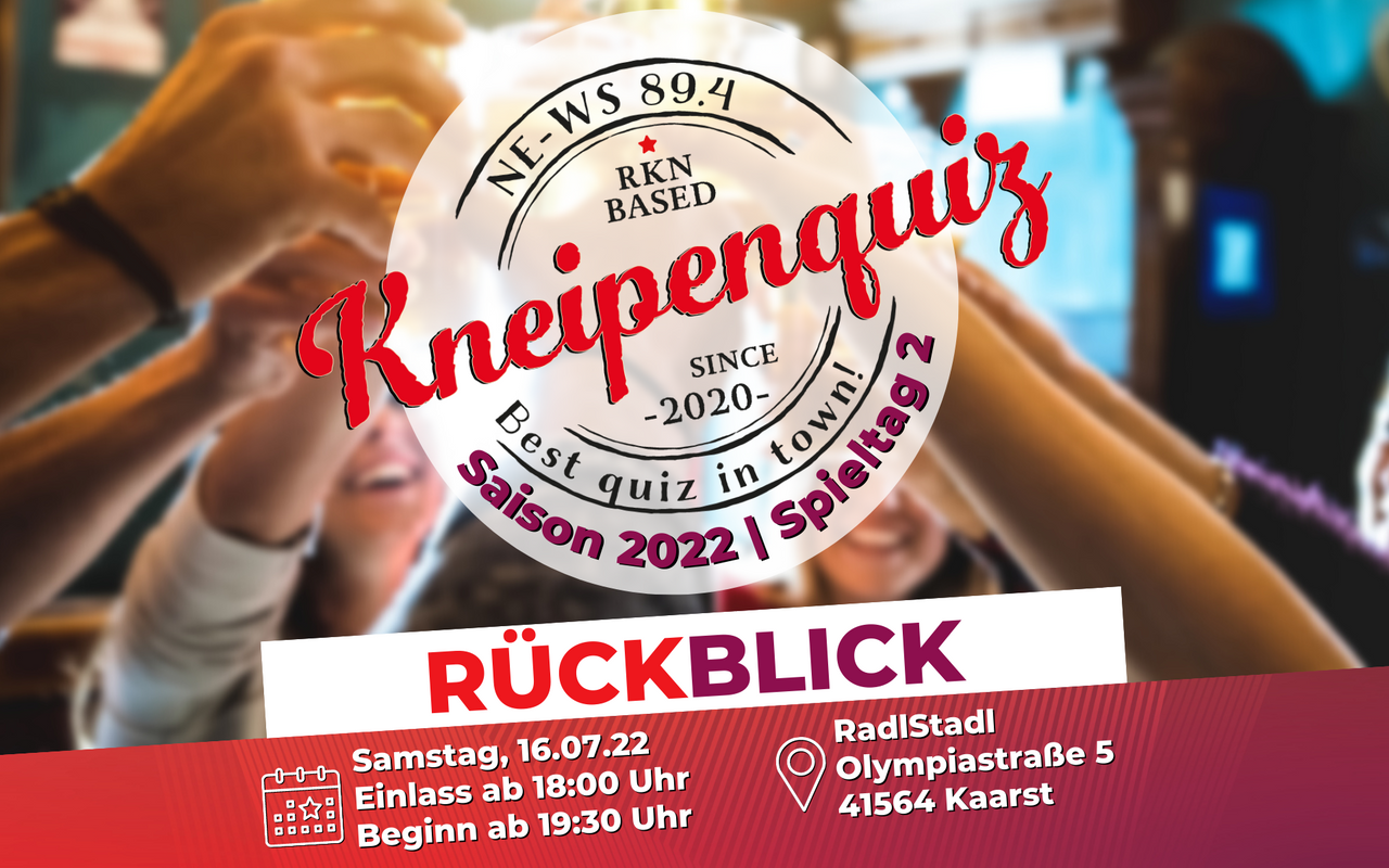 Am Samstag (16.07.22) stand der zweite Spieltag unserer Kneipenquiz-Saison 2022 an. Wir waren zum ersten Mal zu Gast in Kaarst. Die Ergebnisse findet ihr hier.