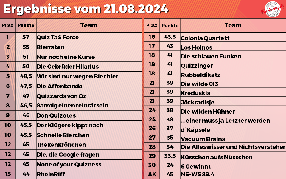 Rückblick: NE-WS 89.4-Kneipenquiz: Saison 24 - Spieltag 3