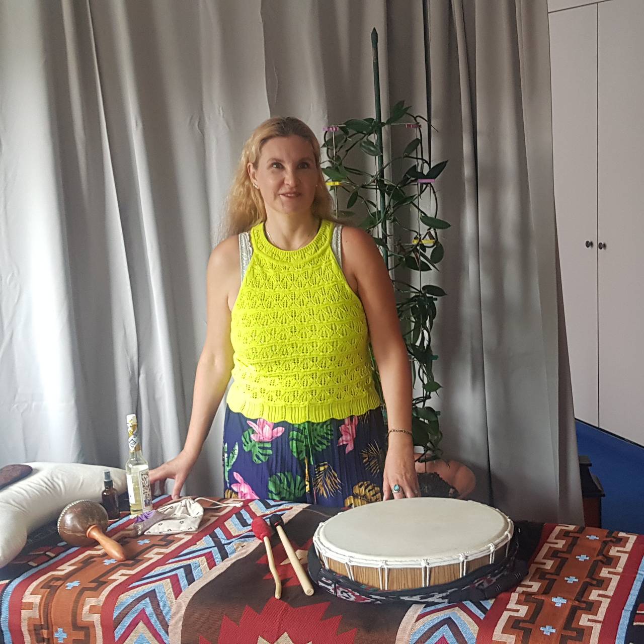 Mit Trommeln und Rasseln versetzt sich "Daya" in Trance. Das Ganze kann eine Stunde lang dauern. Dabei sieht sie Bilder des Klienten und entdeckt so die Probleme, die dann aufgearbeitet werden. So eine Sitzung bei "Daya" kann rund 100 Euro kosten.