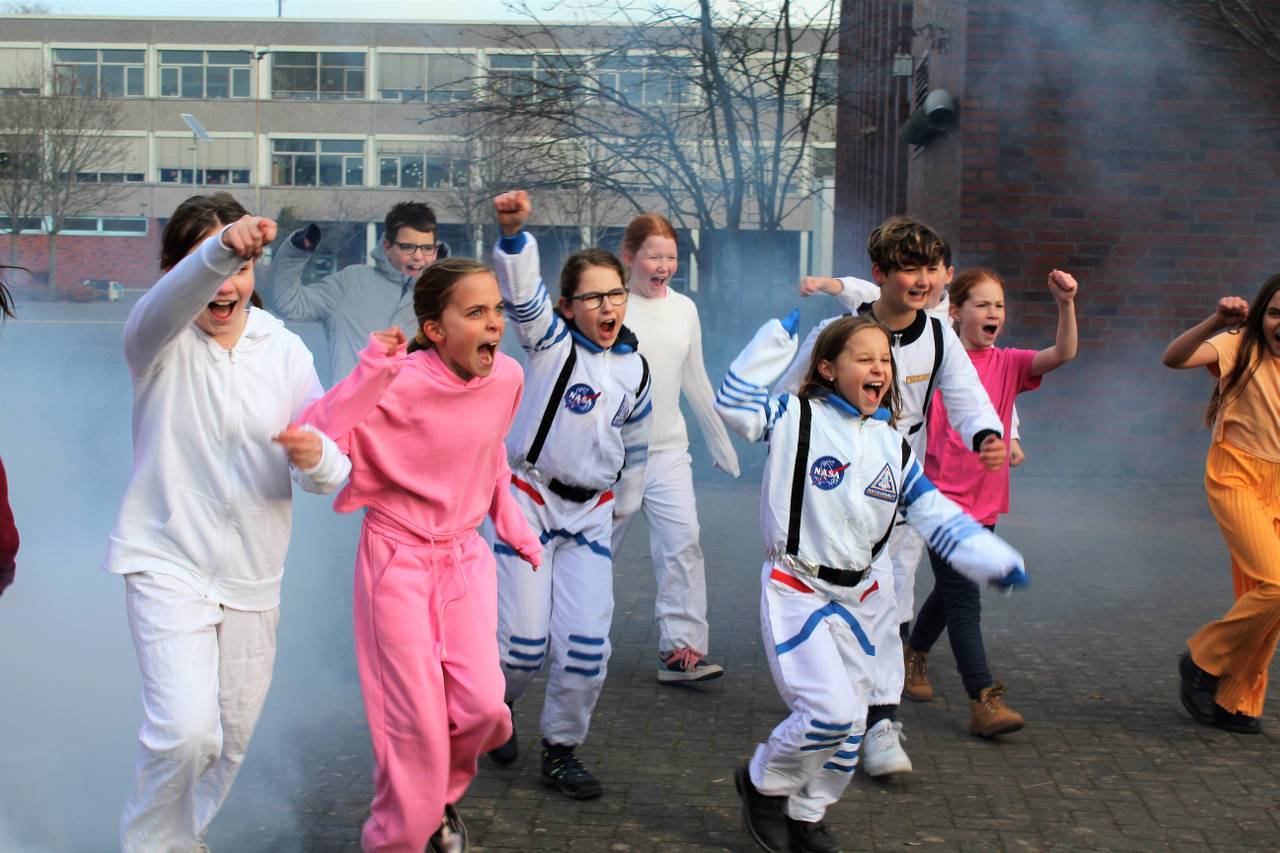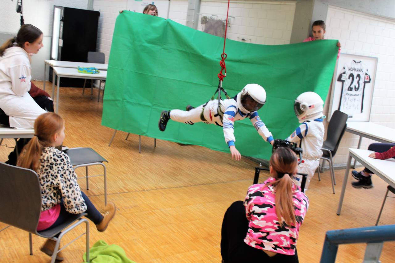 Gedreht haben sie zum Beispiel in der Sporthalle oder auch auf Schulfluren. Einzelne Klassenräume haben die Schüler zur Maske oder zum Kostüm umfunktioniert. Organisiert haben sie alles selbständig zusammen mit der AG-Leiterin Laura-Alina Blüming.