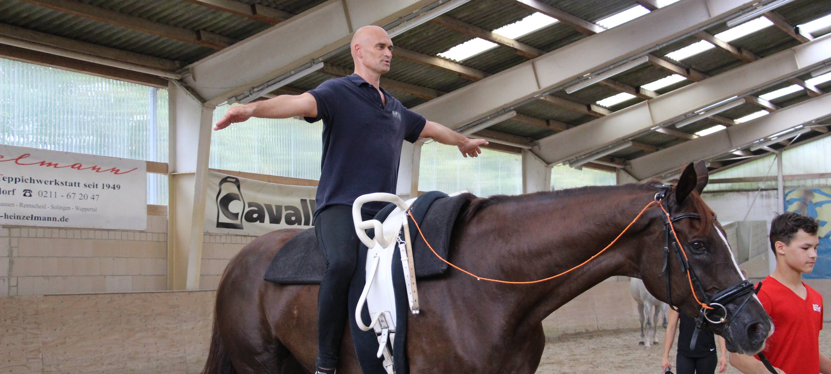 NE-WS 89.4-Reporter Jens Rustemeier hat sich beim Voltigieren beim RSV Grimlinghausen ausprobiert.