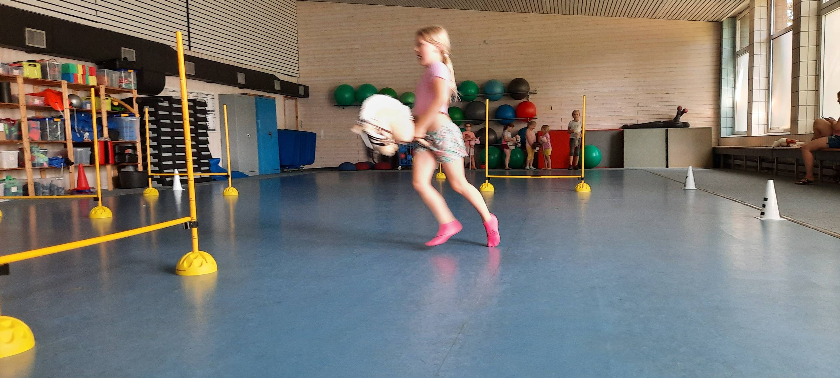 Wenn die Steckenpferde dann fertig gebaut und verkauft sind, kommen sie zum Beispiel beim Glehner Turnverein zum Einsatz. Dort können interessierte Kinder und Jugendliche ihre Fähigkeiten im Hobby-Horsing verbessern. Die Kinder aus der Trainingsgruppe haben mal erklärt was "Hobby-Horsing" eigentlich ist.