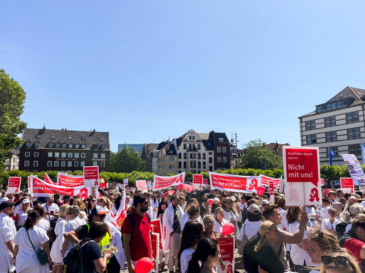 Die Hausärzteverbände Nordrhein und Westfalen-Lippe haben ihre Mitglieder aufgefordert, die Praxen spätestens ab zehn Uhr zu schließen und stattdessen an Online-Fortbildungen teilzunehmen. Eine Notfallversorgung sei aber sichergestellt, hieß es. Patienten seien aufgefordert, ihre Rezepte für Medikamente noch am Vortag einzulösen, um nicht auf die Notdienst-Apotheke zurückgreifen zu müssen. Ein Aktionsbündnis von Apothekern und Medizinern im Rheinland hat für den frühen Abend zusätzlich zur Protestaktion ins Haus der Ärztekammer geladen. Gemeinsam wollen sie auf Missstände in der ambulanten Gesundheitsversorgung aufmerksam machen.